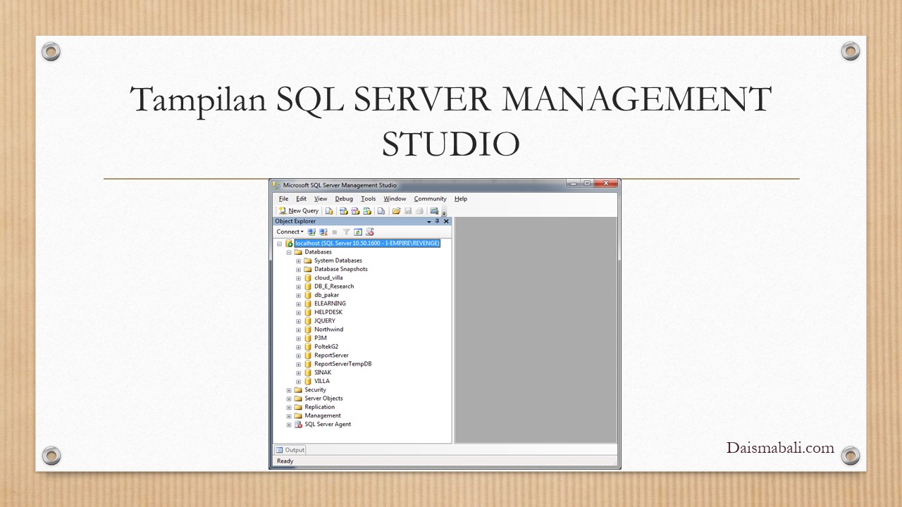 Dalam Implementasi Sistem Basis Data ada banyak tools yang bisa digunakan. Daisma disini akan menggunakan Tools Microsoft SQL Server 2008 R2 untuk implementasinya.