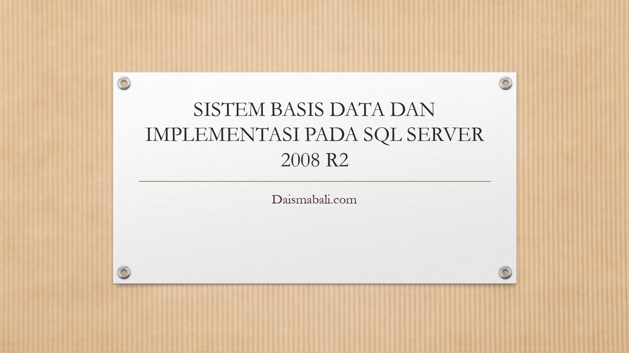 Demikian Pengenalan Sistem Basis data dan Implementasi menggunakan SQL SERVER 2008 R2