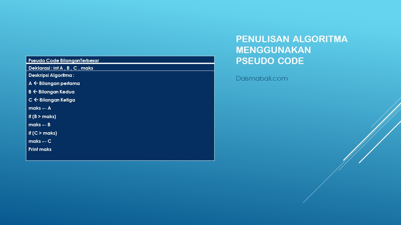 Sedangkan penyelesaian dalam penulisan pseudo – code seperti gambar diatas :