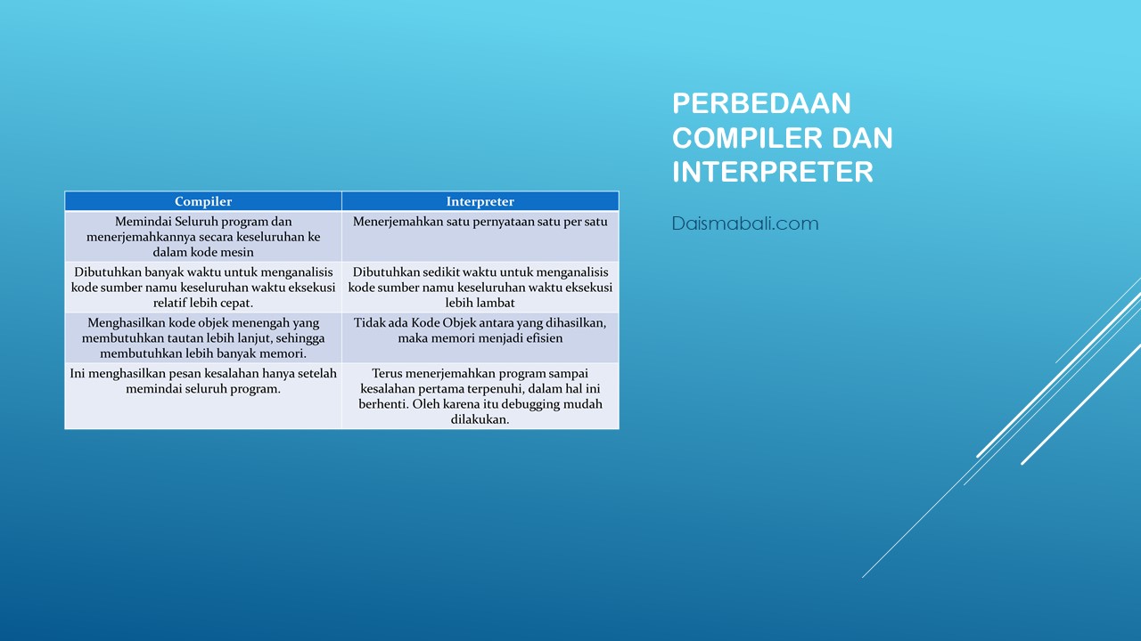 Compiler dan Interpreter merupakan alat penterjemah dari bahasa program menjadi sebuah bahasa mesin yang dimengerti oleh komputer. Tentu ada perbedaan Konsep Compiler dan Interpreter yaitu sebagai gambar diatas