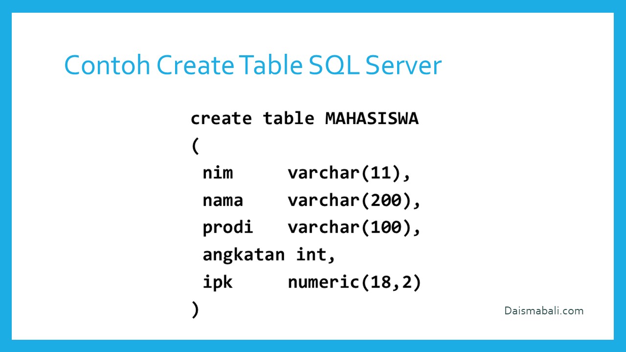- Contoh Create Table SQL Server