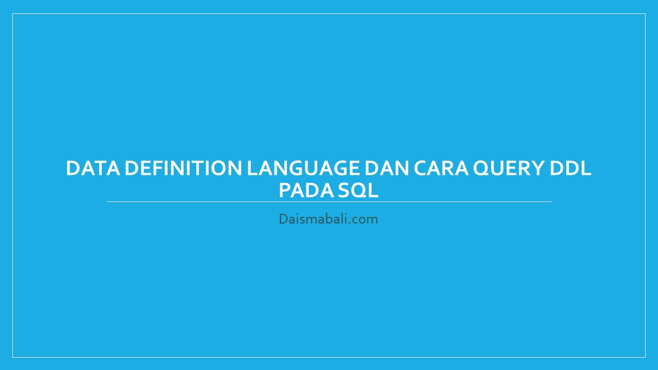 Apa Itu Data Definition Language ( DDL ) ?. Data Definition Language (DDL) yaitu kumpulan perintah query pada SQL untuk menggambarkan desain dari database secara menyeluruh. Data Definition Language ( DDL ) juga digunakan untuk membuat, merubah maupun menghapus struktur atau definisi tipe data dari obyek yang ada pada database.