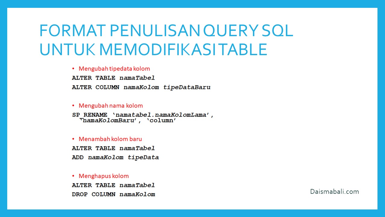 - Format Penulisan Alter Table