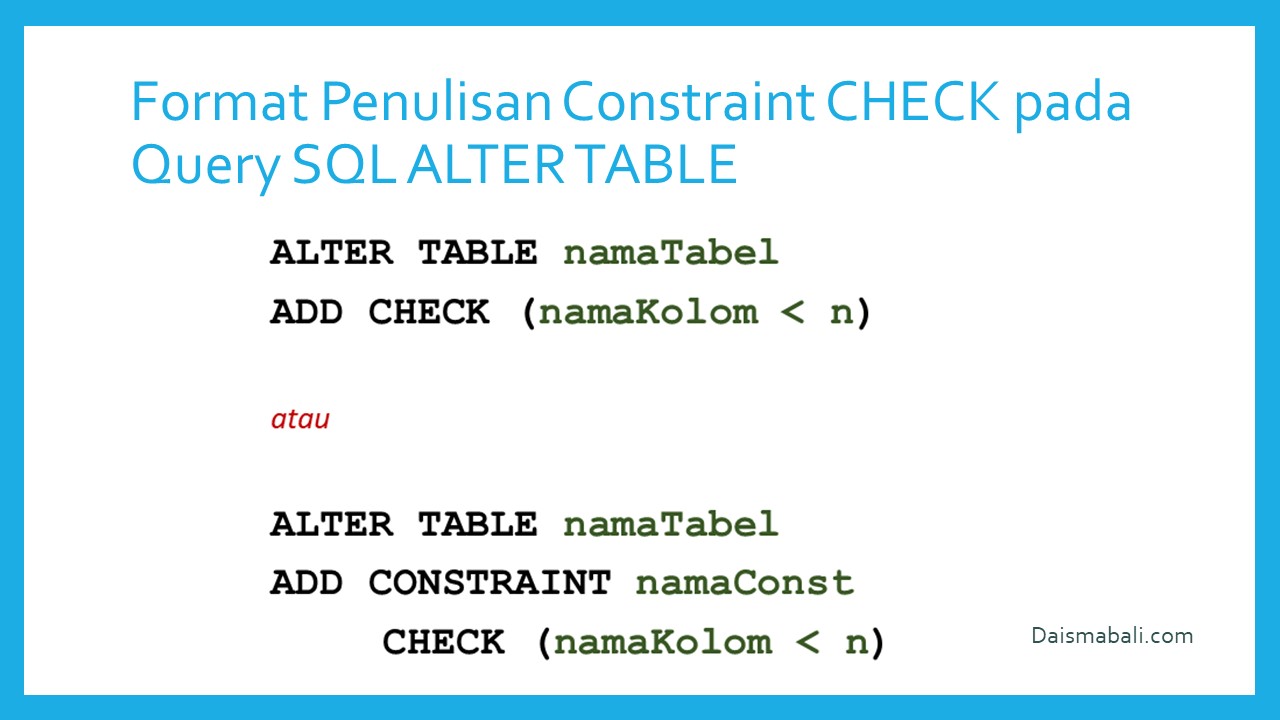 - Format Penulisan Constraint Check pada Query SQL Alter Table