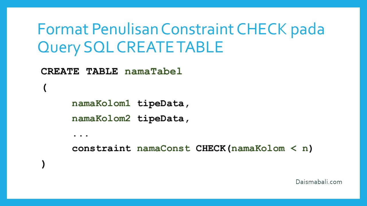 - Format Penulisan Constraint Check pada Query SQL Create Table