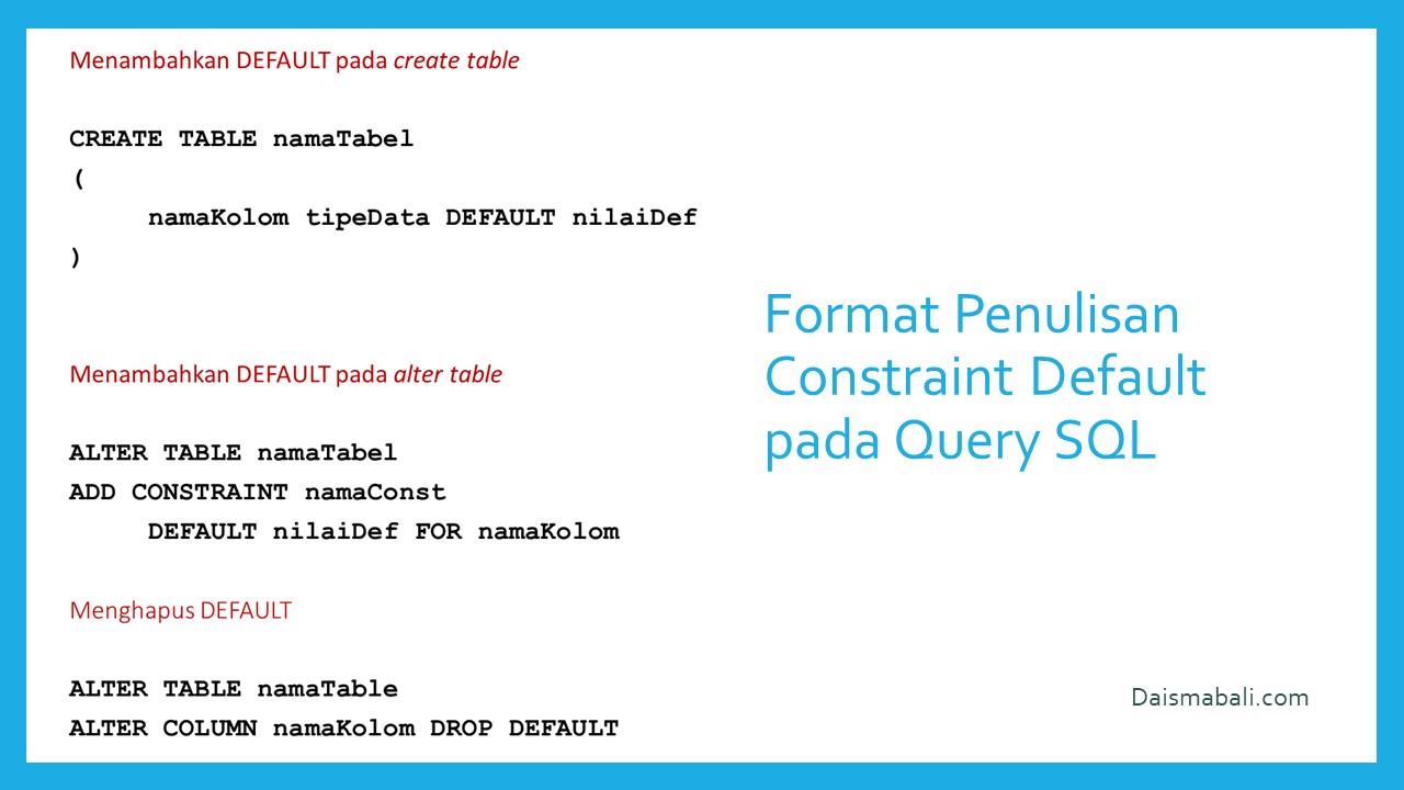 - Format Penulisan Constraint Default pada Query SQL