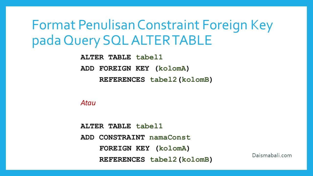 - Format Penulisan Constraint Foreign Key pada Query SQL Alter Table