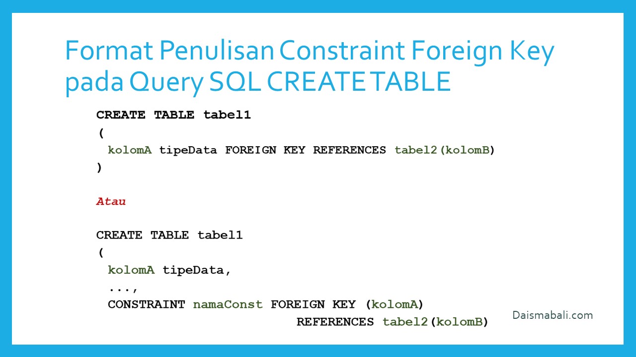 - Format Penulisan Constraint Foreign Key pada Query SQL Create Table