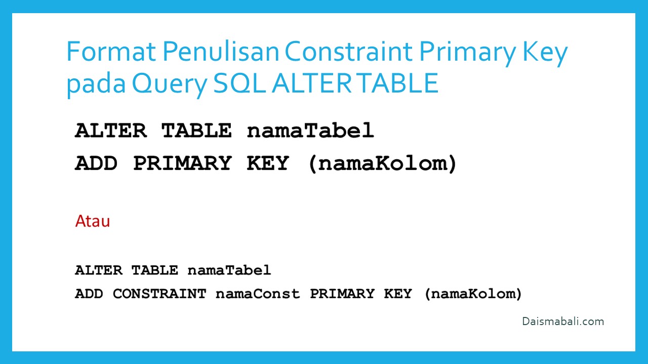 - Format Penulisan Constraint Primary Key pada Query SQL Alter Table