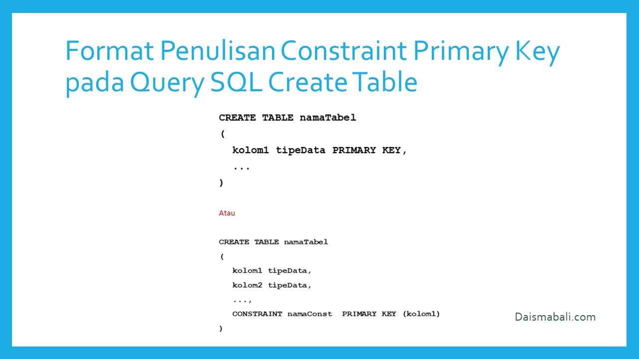 - Format Penulisan Constraint Primary Key pada Query SQL Create Table