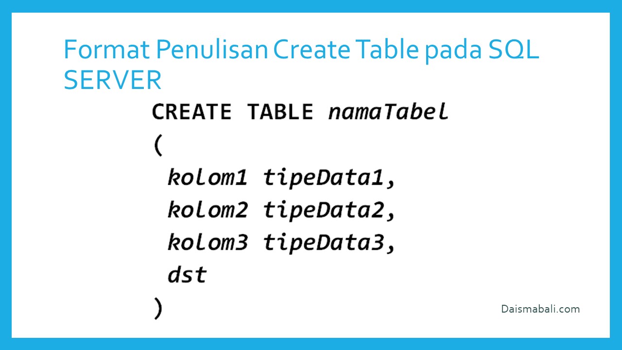 - Format Penulisan Create Table