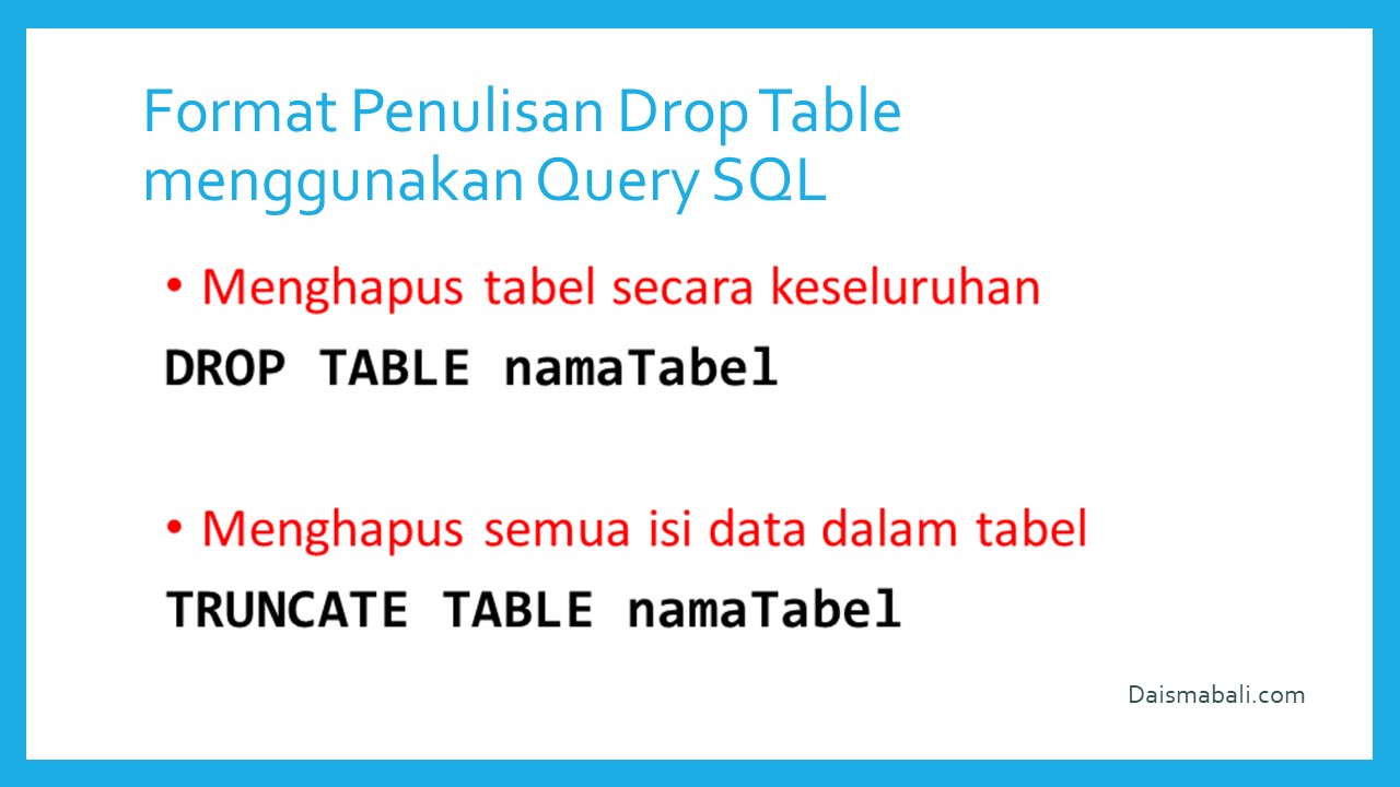 - Format Penulisan Drop Table Menggunakan Query SQL