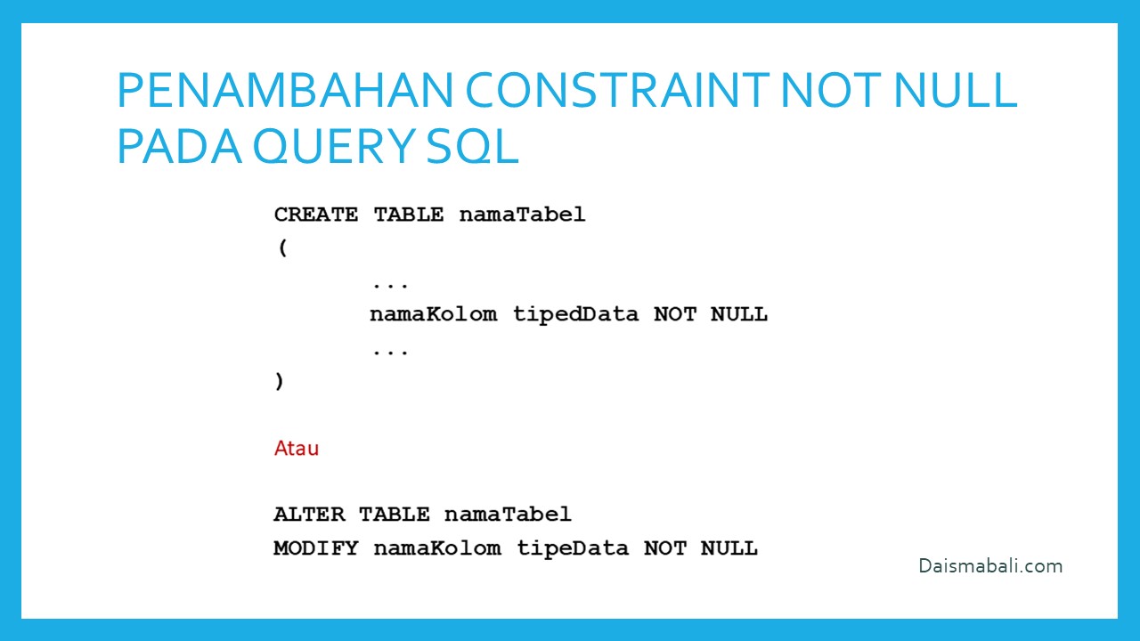 - Penambahan COnstraint Not Nul pada Query Sql