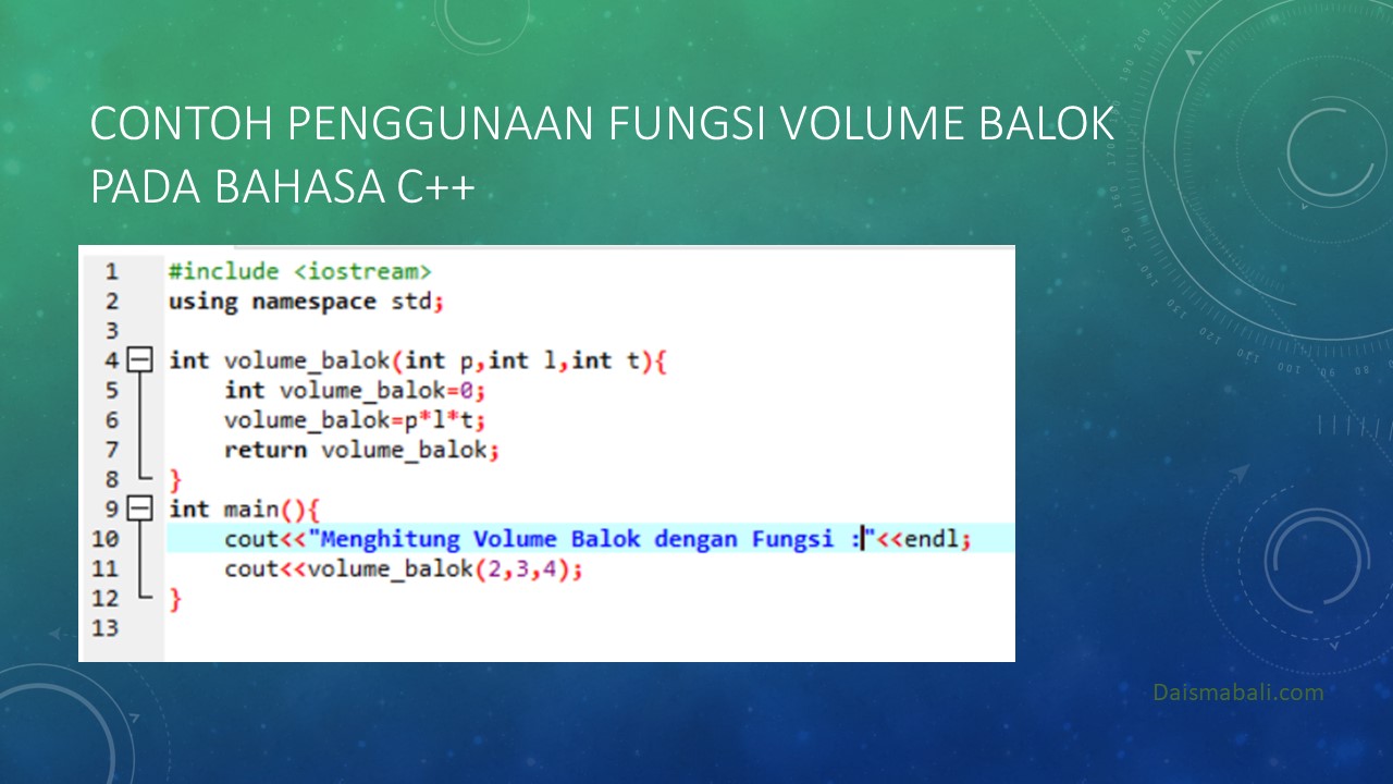 - Contoh Penggunaan Fungsi Volume Balok pada Bahasa C++