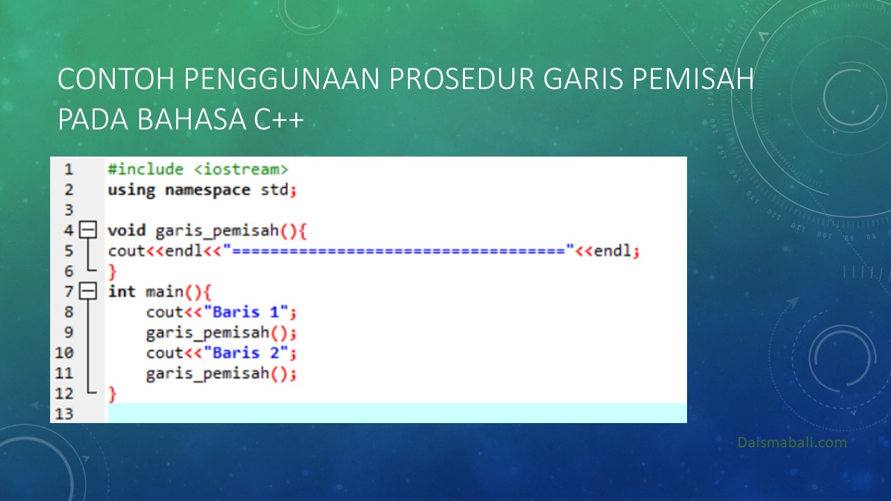 - Contoh Penggunaan Prosedur Garis Pemisah pada Bahasa C++