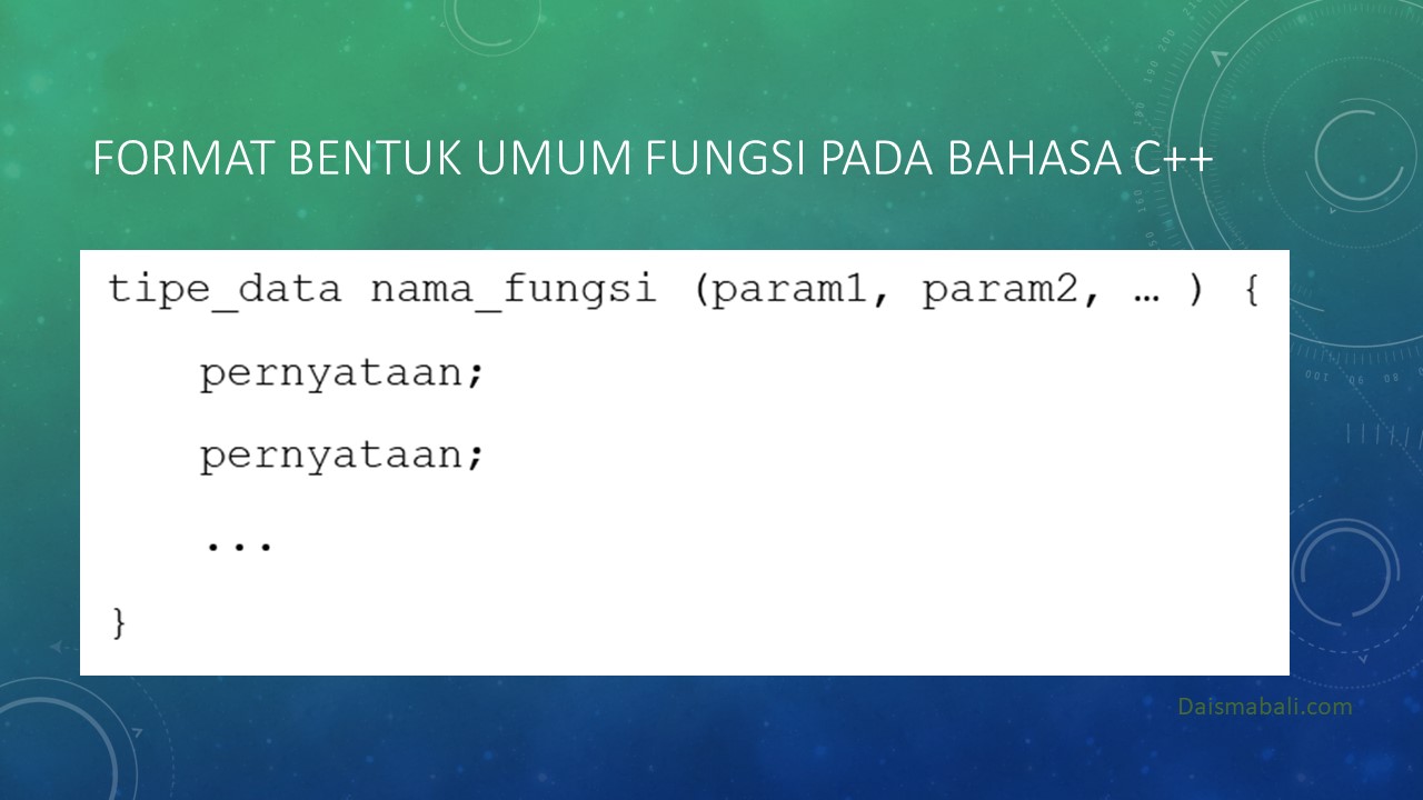 - FORMAT BENTUK UMUM FUNGSI PADA BAHASA C++