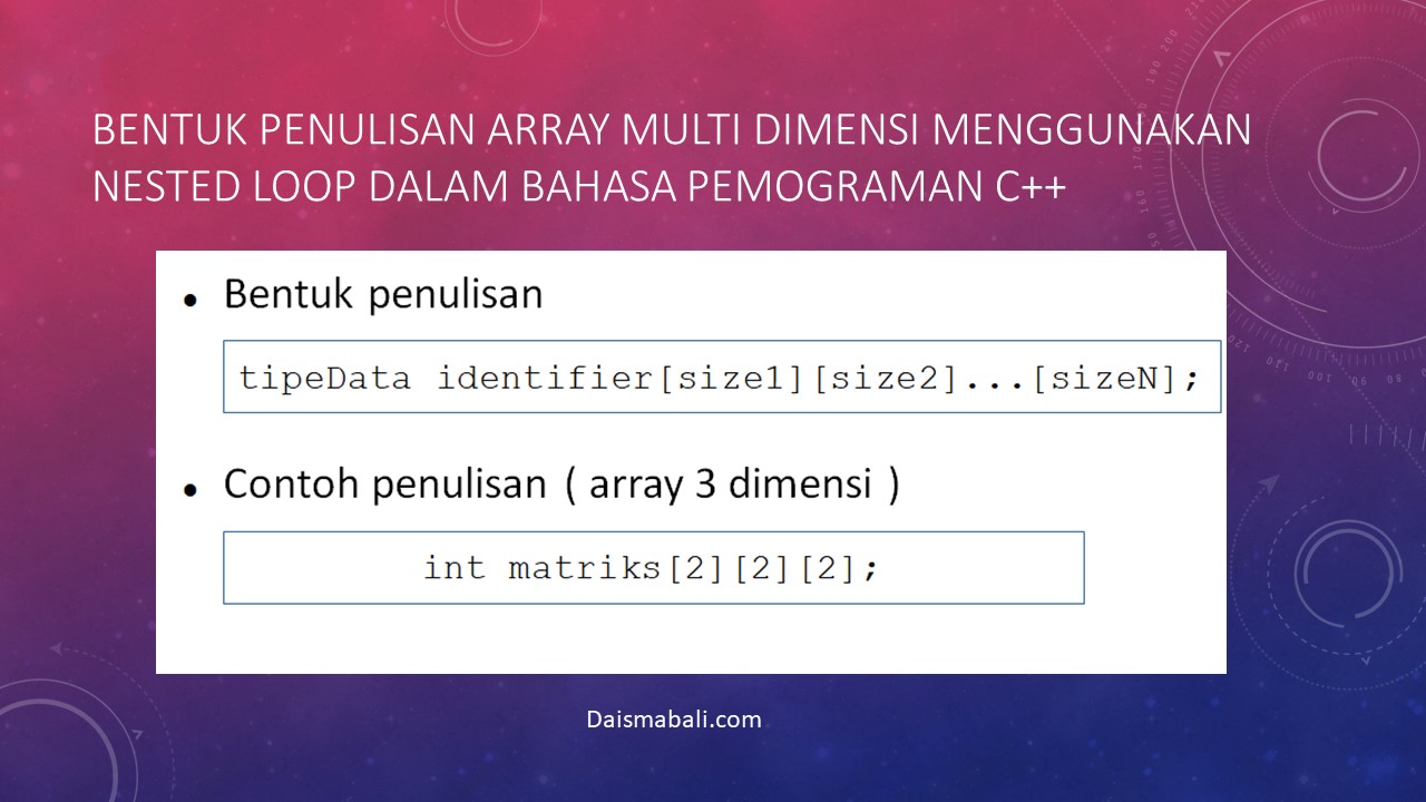 - BENTUK PENULISAN ARRAY MULTI DIMENSI MENGGUNAKAN NESTED LOOP DALAM BAHASA PEMOGRAMAN C++