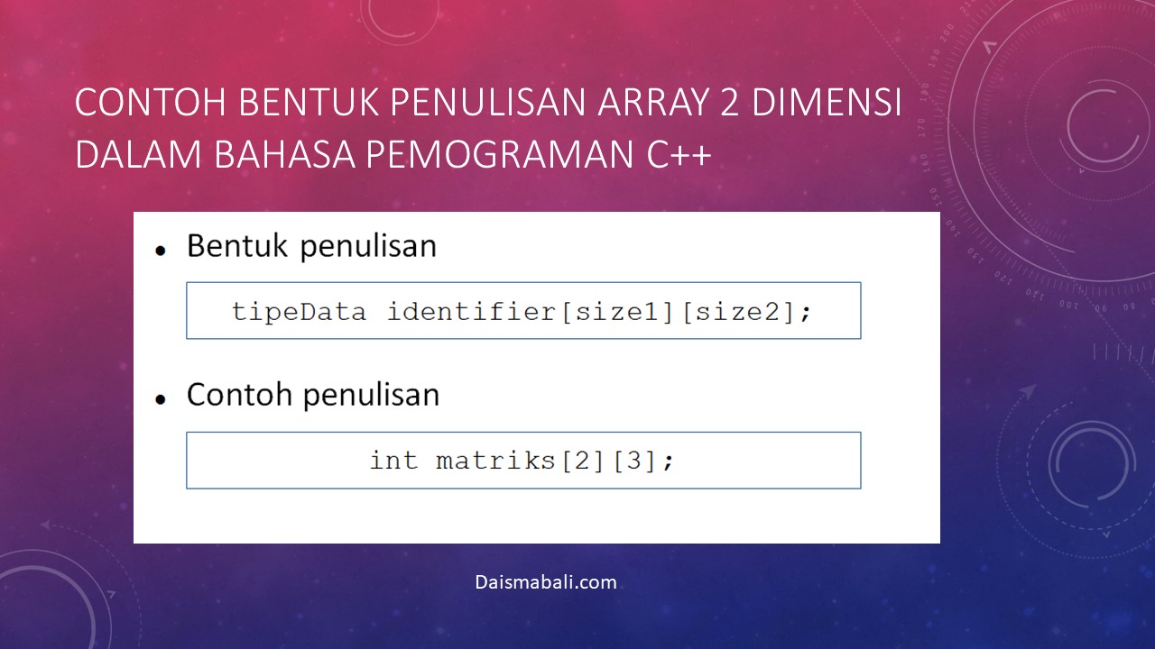 - CONTOH BENTUK PENULISAN ARRAY 2 DIMENSI DALAM BAHASA PEMOGRAMAN C++