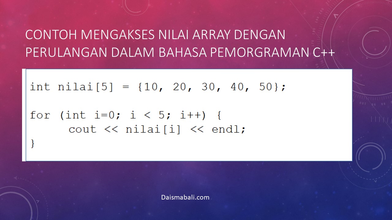- CONTOH MENGAKSES NILAI ARRAY DENGAN PERULANGAN DALAM BAHASA PEMORGRAMAN C++