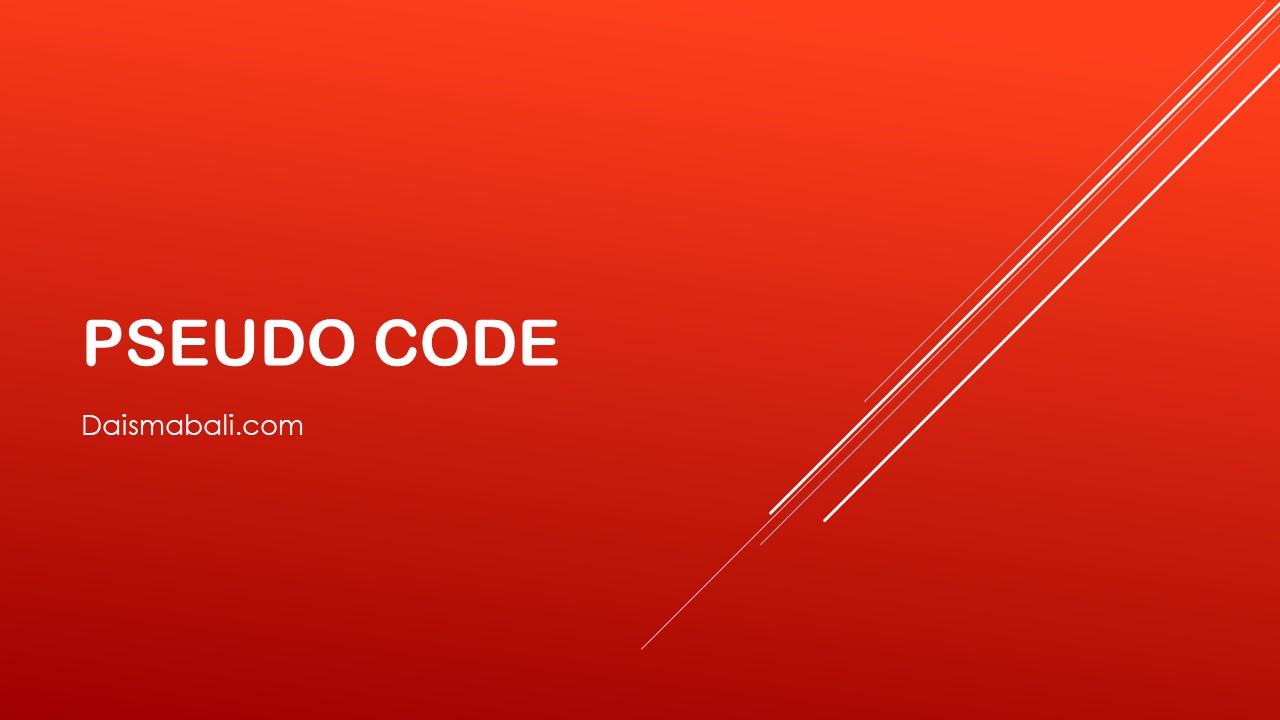 Pseudo memiliki arti imitasi atau mirip atau menyerupai. sedangkan code memiliki arti menunjukkan kode dari program. jadi pengertian Pseudocode adalah kode yang mirip dengan instuksi kode program yang sebenarnya.