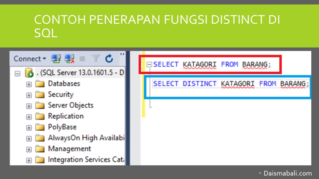 - CONTOH PENERAPAN Fungsi DISTINCT DI SQL