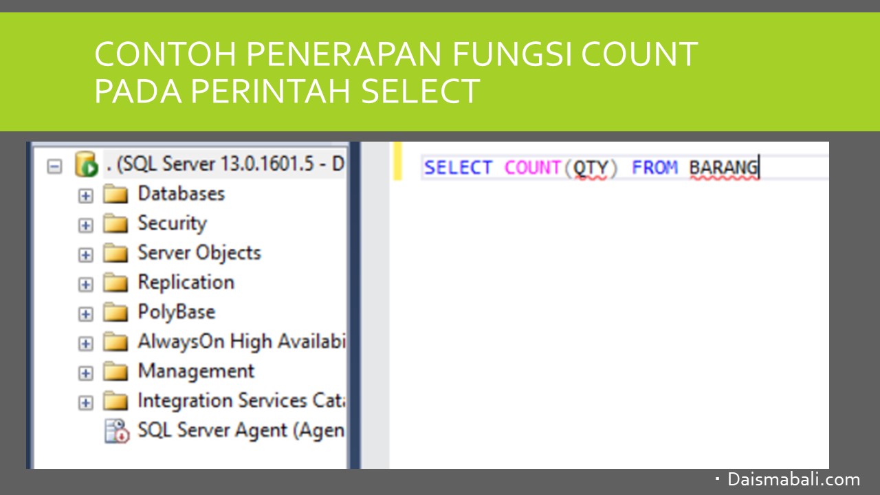 - CONTOH penerapan fungsi COUNT pada Perintah SELECT