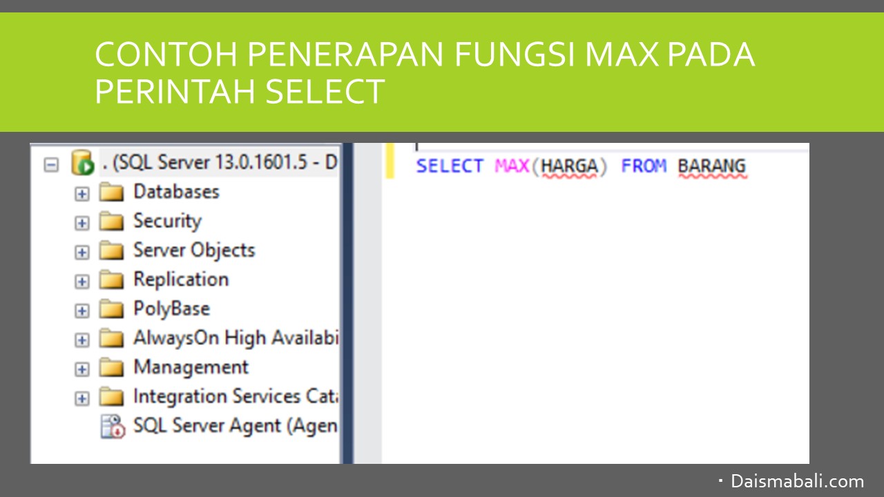 - CONTOH penerapan fungsi MAX pada Perintah SELECT
