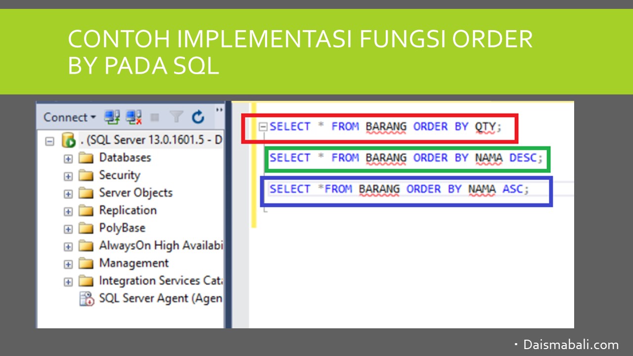 - CONTOh IMPLEMENTASI fungsi Order By pada SQL