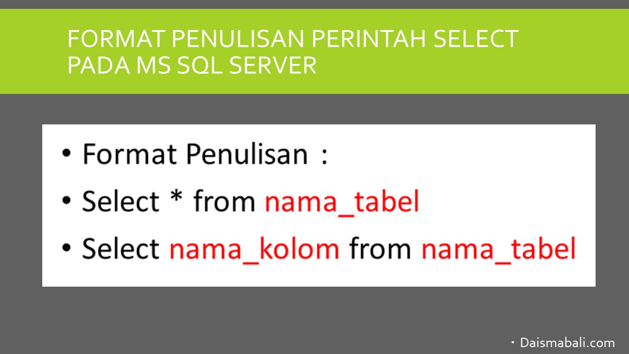 - Format Penulisan Perintah SELECT pada MS SQL SERVER