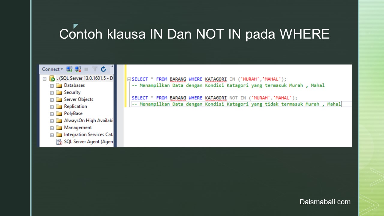 - Contoh klausa IN Dan NOT IN pada WHERE