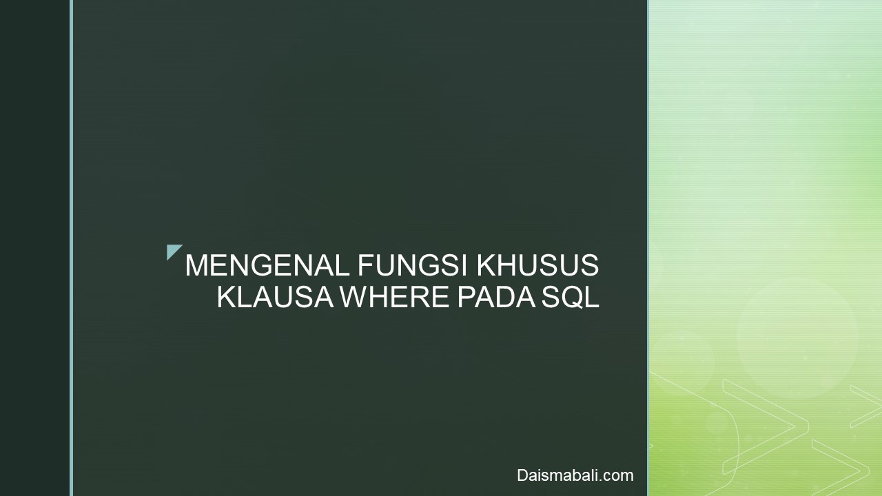Demikianlah Penjelasan Mengenai Fungsi Khusus Klausa WHERE di SQL. Semoga bermanfaat.