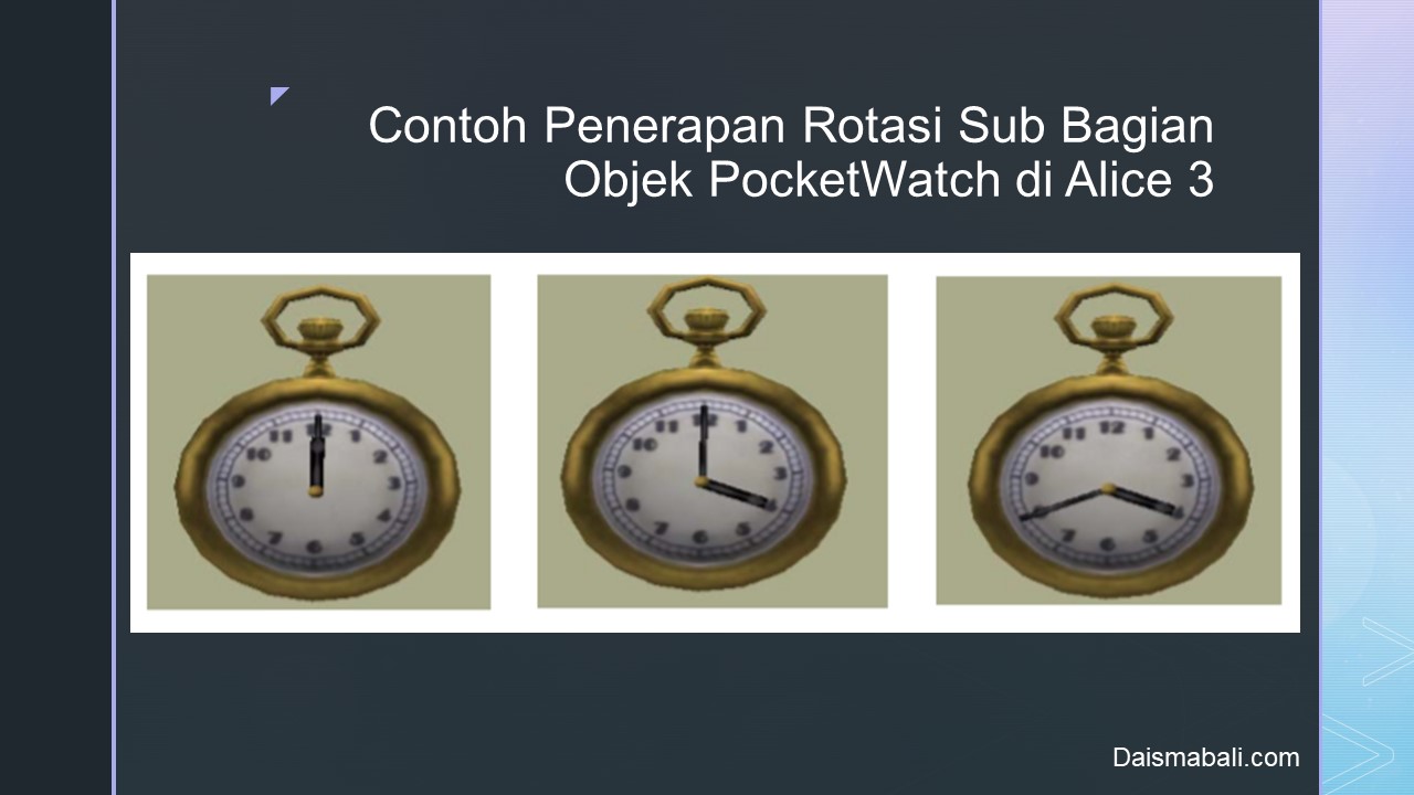 - Contoh Penerapan Rotasi Sub Bagian Objek PocketWatch di Alice 3