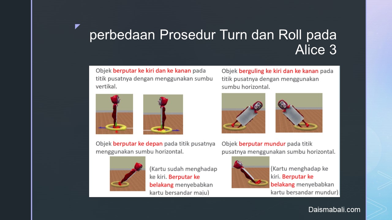 - perbedaan Prosedur Turn dan Roll pada Alice 3