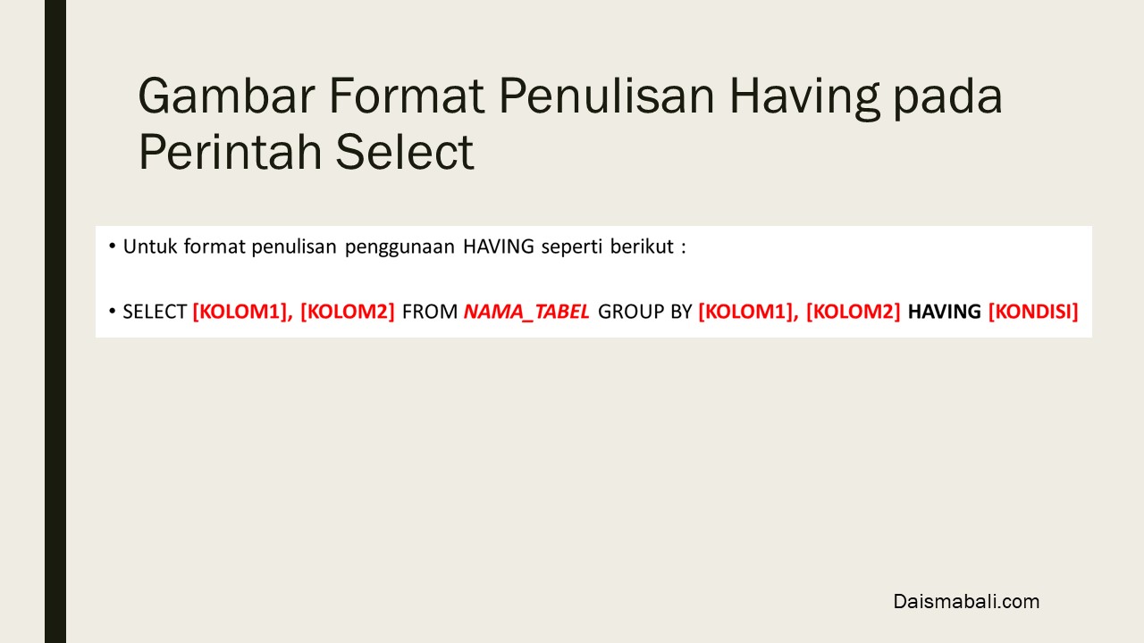 - Gambar Format Penulisan Having pada Perintah Select