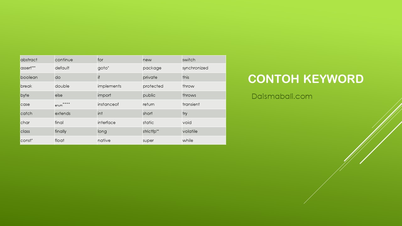- Tidak boleh menggunakan Keyword.