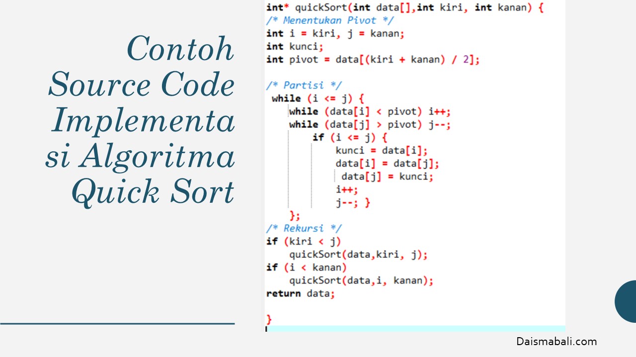 - Contoh Source Code Implementasi Algoritma Quick Sort