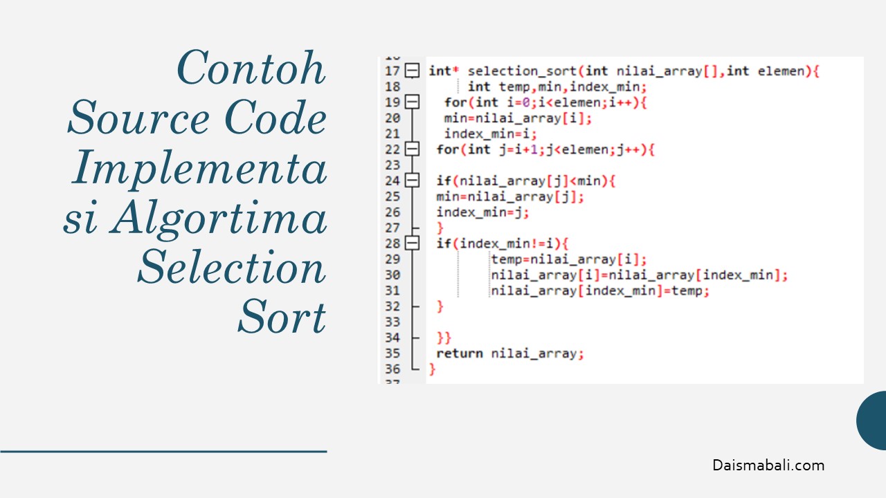 - Contoh Source Code Implementasi Algortima Selection Sort