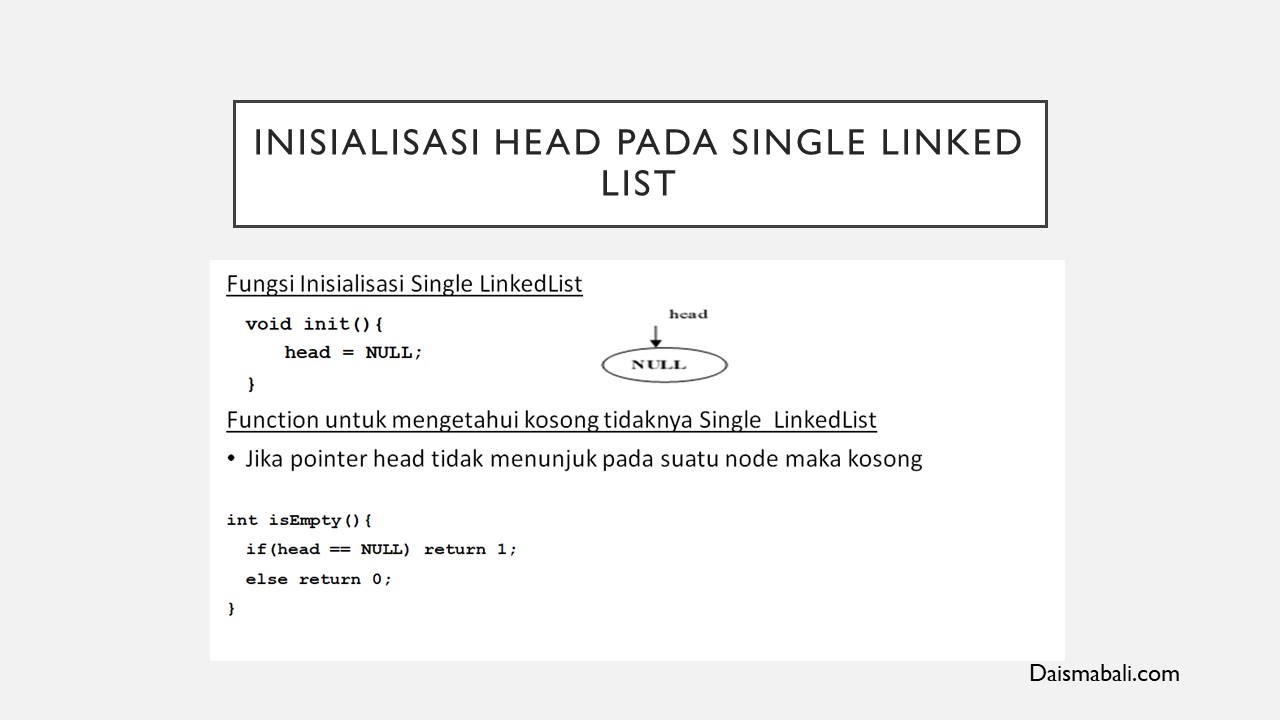 - Inisialisasi HEAD pada Single Linked List