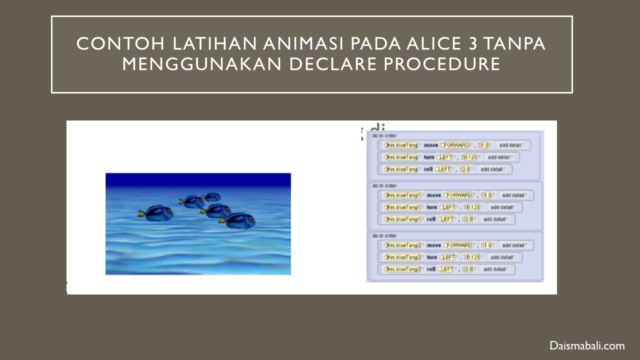 - Contoh Latihan Animasi pada Alice 3 Tanpa Menggunakan Declare Procedure
