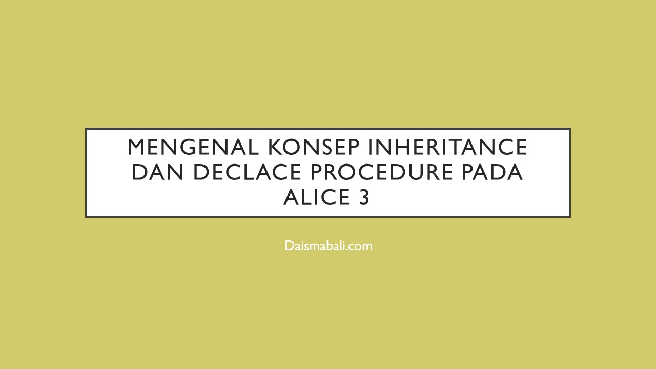Sebelum menjelaskan Declare Procedurs akan saya jelaskan terlebih dahulu tentang Pewarisan. Pewarisan dalam Pemrograman Berorientasi Objek di Alice disebut Inheritance. Inheritance adalah konsep pemrograman dimana sebuah class dapat menurunkan / mewariskan property dan Method, dalam hal ini Konsep Pewarisan yang dimaksud adalah yang diturunkan adalah Prosedure dan Function yang dimiliknya kepada class lain. Manfaat dari Konsep Inheritance ini untuk memanfaatkan fitur code reuse untuk menghindari duplikasi kode program.