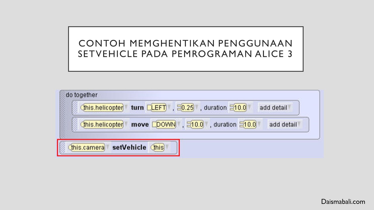 Dari Gambar Tersebut Menjelaskan Bahwa Objek Camera menghentikanSetVehicle dari Objek Helikopter