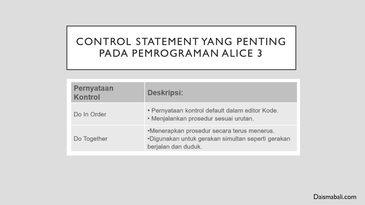 Merupakan Control Statment yang Secara Default ada Dalam Editor Code Alice 3 yang prosesnya menjalankan prosedur sesuai Urutan.