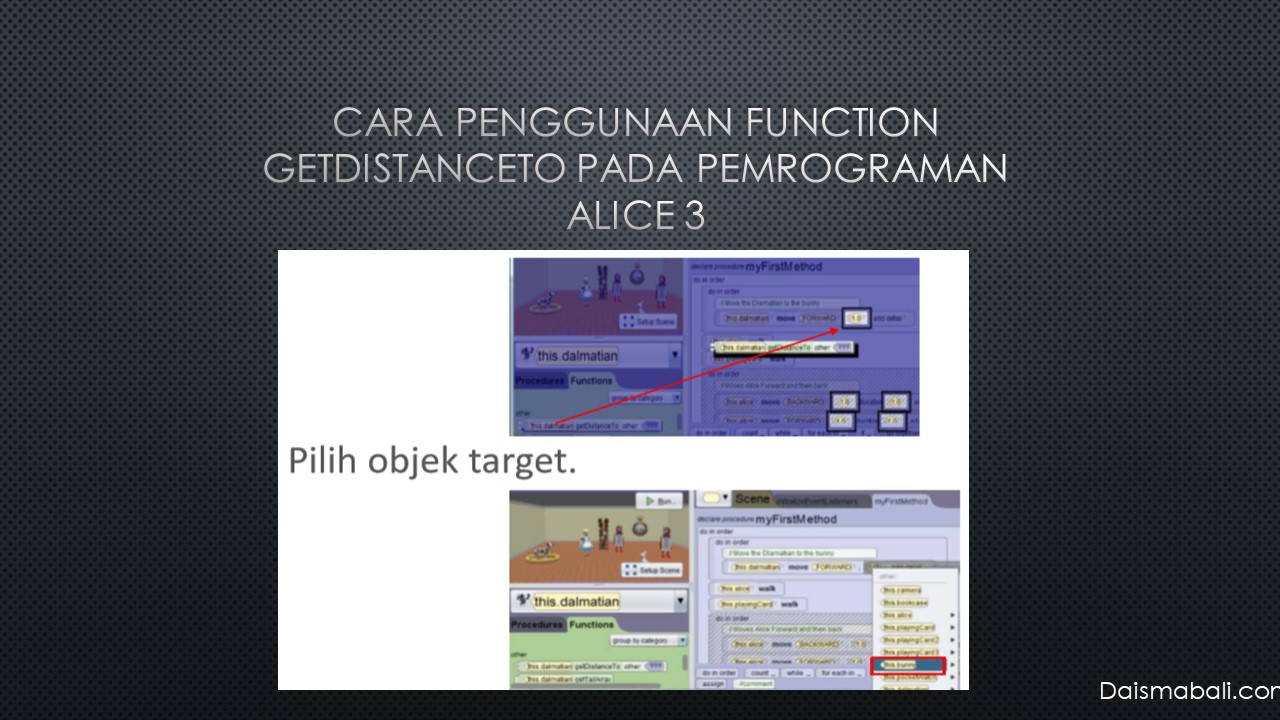 - Contoh Function GetDistanceTo pada Pemrograman Alice 3