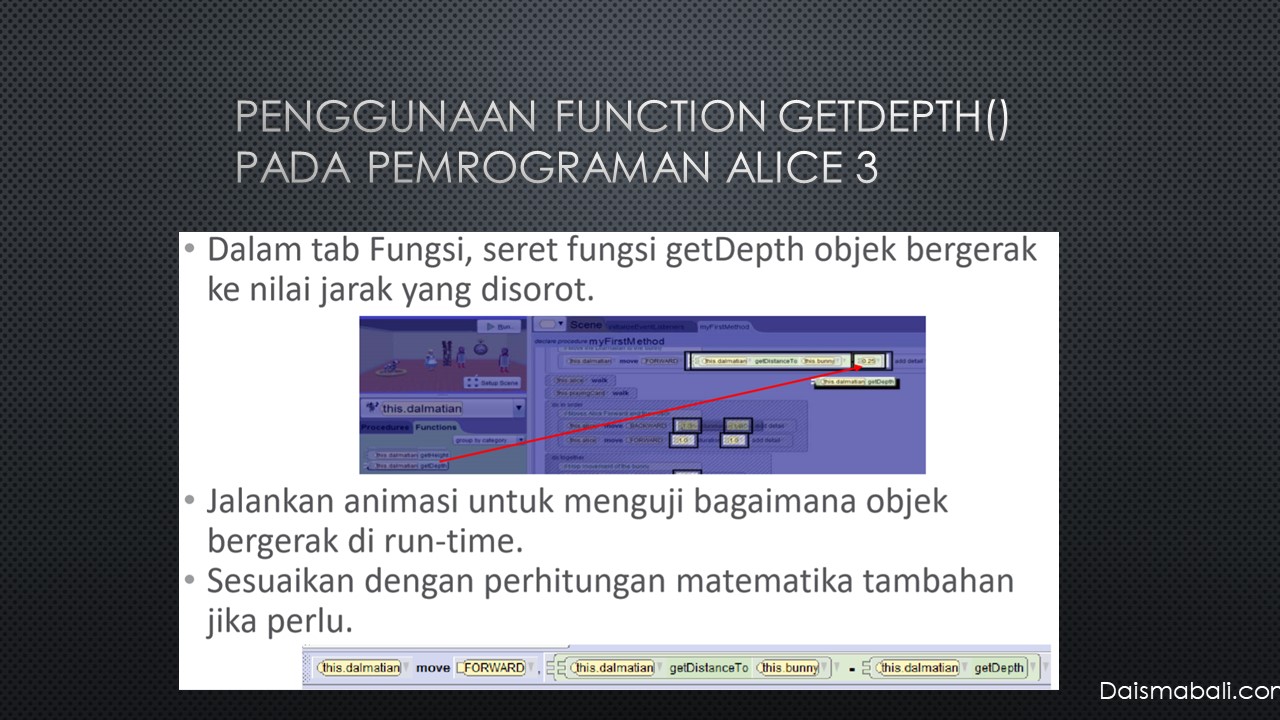 Selain Function getDistanceTo dalam alice 3 ada Function GetDepth()