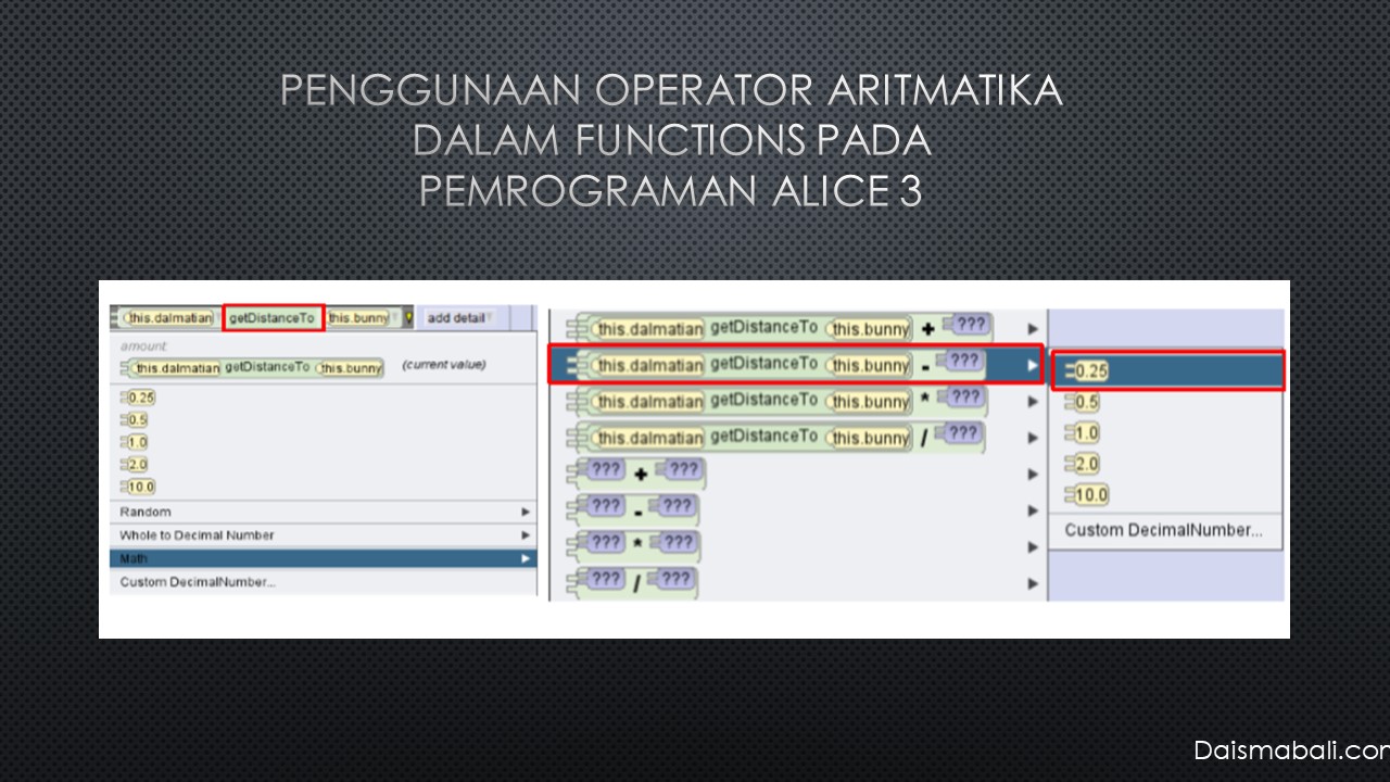 - PENGGUNAAN OPERATOR ARITMATIKA DALAM FUNCTIONS PADA PEMROGRAMAN ALICE 3