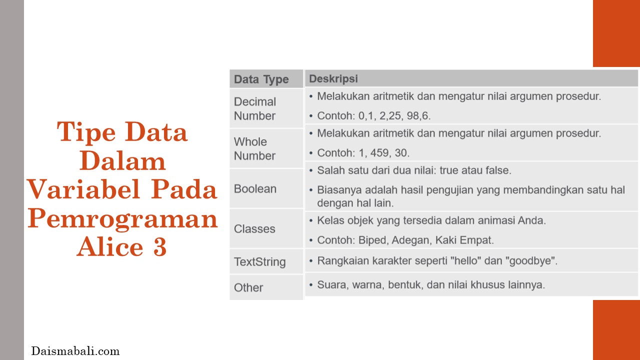 - Tipe Data Dalam Variabel Pada Pemrograman Alice 3