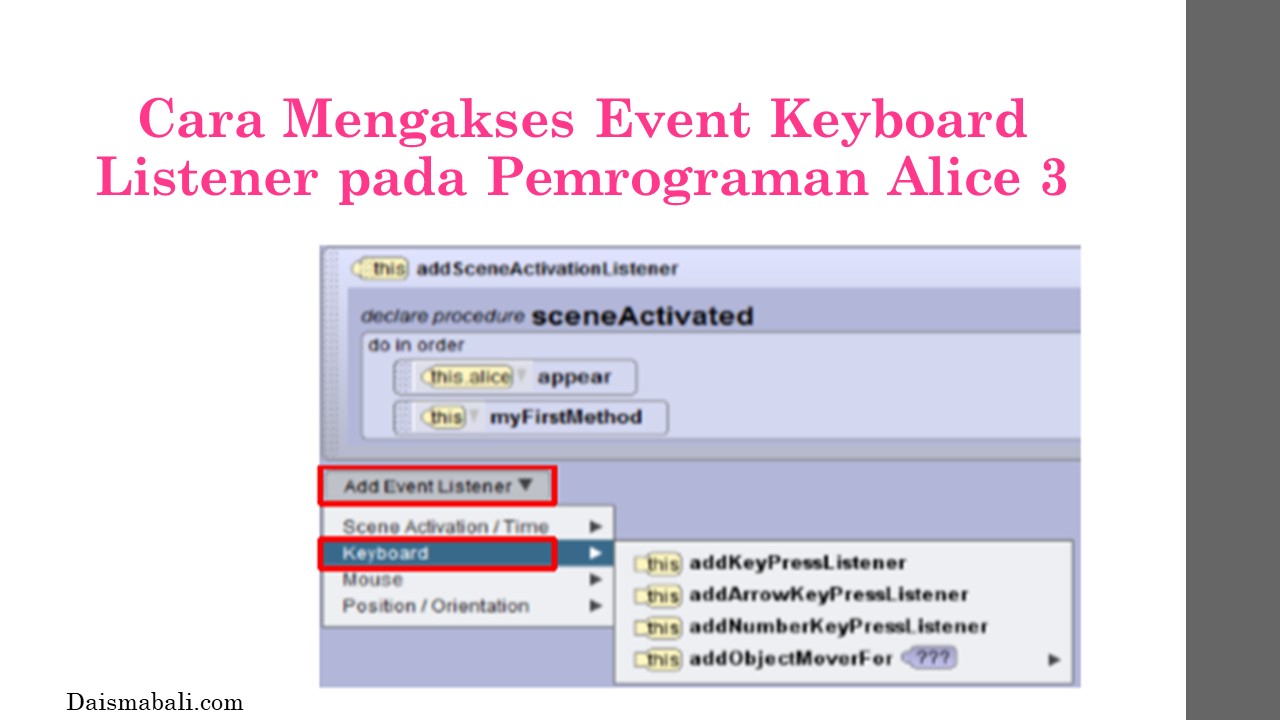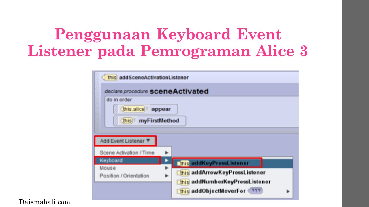 - Penggunaan Keyboard Event Listener pada Pemrograman Alice 3