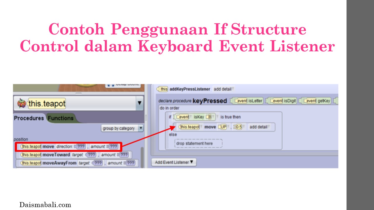 - Contoh Penggunaan If Structure Control dalam Keyboard Event Listener