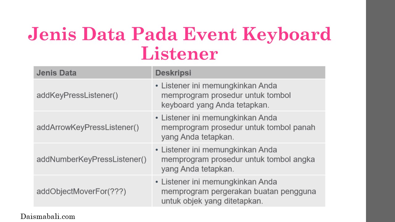 - Jenis Data Pada Event Keyboard Listener