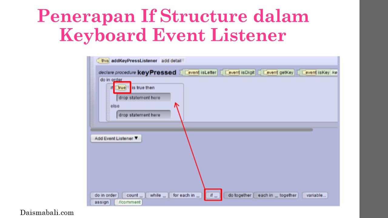 - Penerapan If Structure dalam Keyboard Event Listener